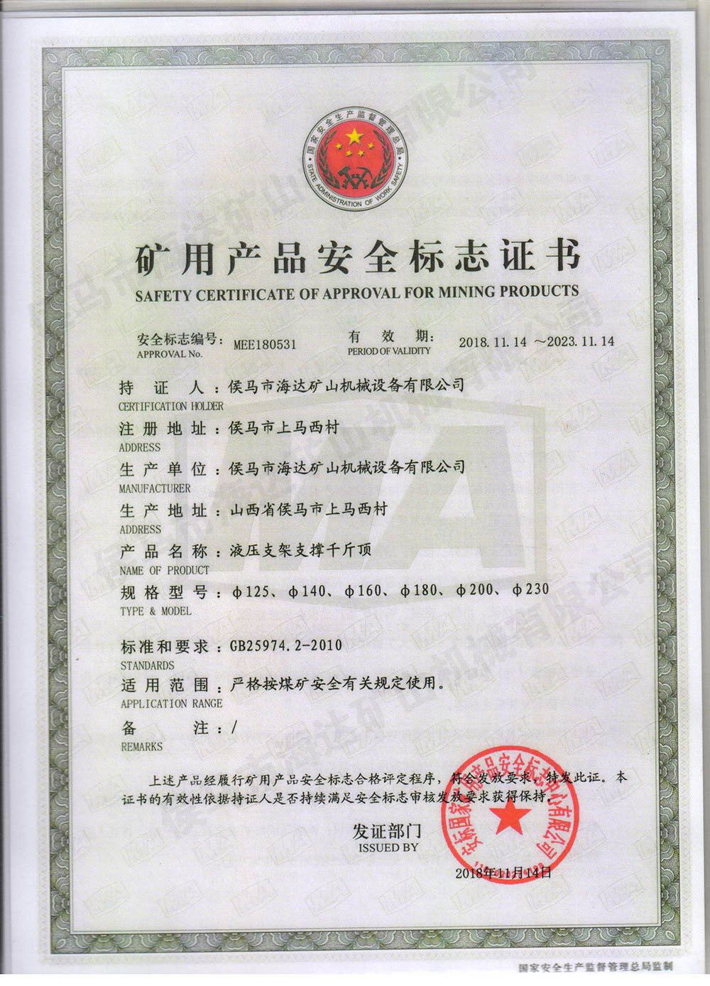 煤安標(biāo)(雙伸立柱18
